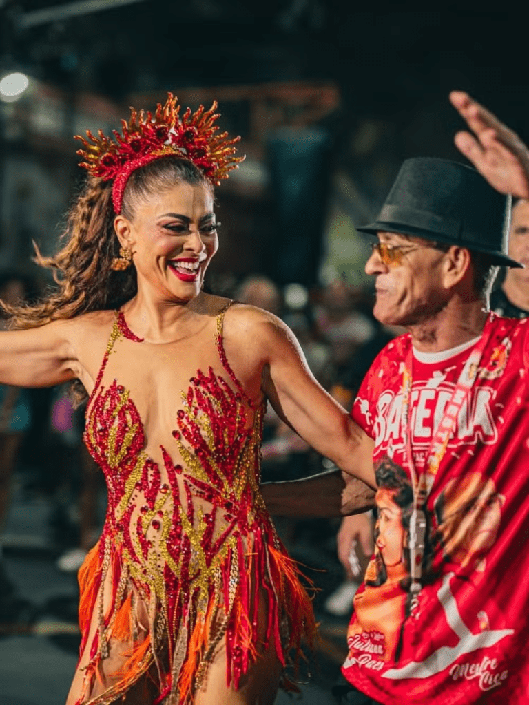 “A Viradouro me deu muito brilho. Costumamos dizer que as Escolas convidam os Artistas para emprestar o brilho deles aos Desfiles, mas, no começo da minha Carreira, foi o contrário: foi a Viradouro que me deu luz, visibilidade e destaque. Gratidão é a palavra que norteia a minha volta”, declarou Ju, emocionada, pouco antes de ser Coroada pelo Mestre Ciça, que Comanda a Bateria Furacão Vermelho e Branco há 18 anos e será o Enredo da Escola no próximo Carnaval.
